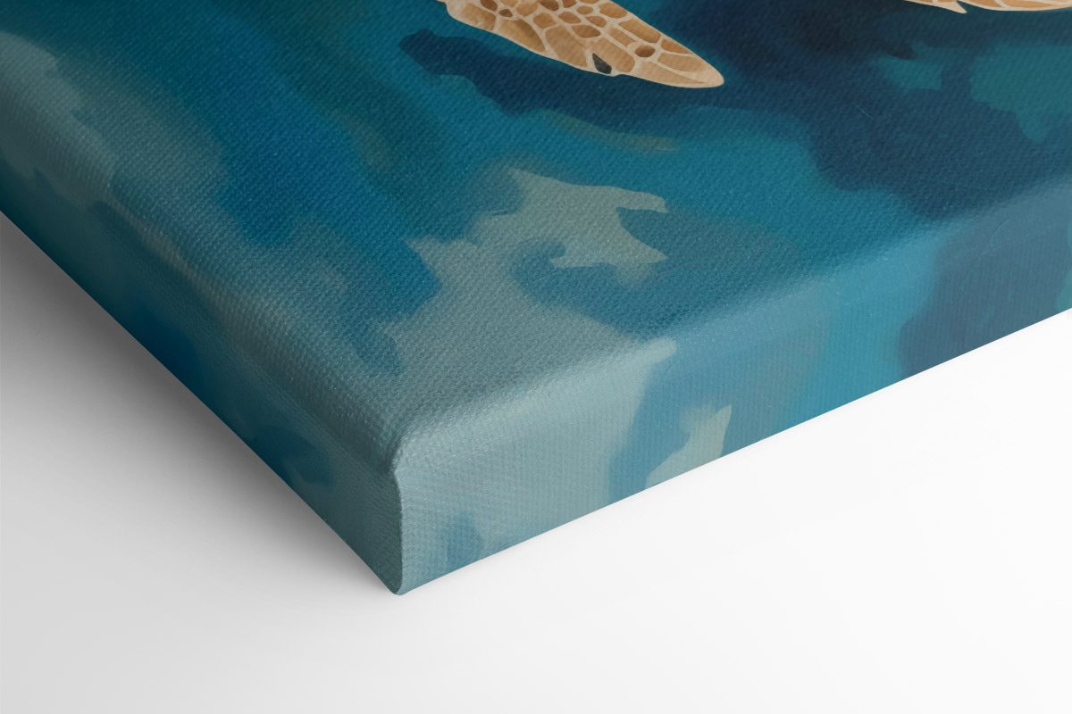Duik in een rustige onderwaterwereld met deze prachtige canvasprint van twee schildpadden die sierlijk door het water glijden. Het is net een mini-vakantie aan je muur, die je meeneemt naar zonovergoten zeeën en zachte golven. Stel je voor dat je een kamer binnenloopt en je je meteen een stuk rustiger voelt – deze charmante wezens brengen zeker een beetje strandgeluk in je kamer. Perfect om een vleugje natuur toe te voegen en je eraan te herinneren te vertragen, adem te halen en misschien zelfs je innerlijke schildpad te omarmen. Wie wil er nu geen vriendelijke herinnering om het leven rustig aan te doen?