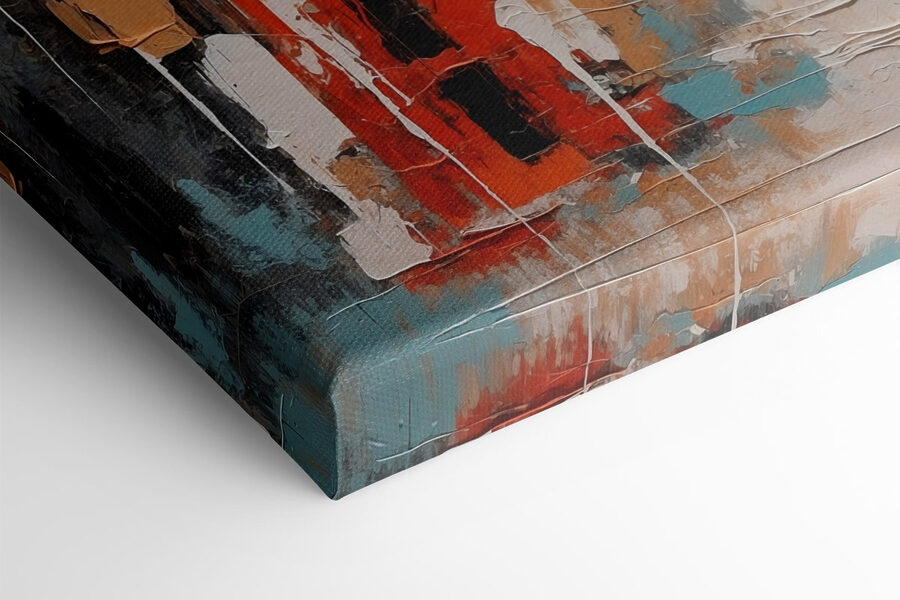 Fleur een kamer op met deze canvasprints Schilderij van verschillende kleuren. Het is als een vrolijke dans van spatten en streken, die een levendige flair geeft aan elke ruimte. Stel je voor dat je een gezellige woonkamer of studeerkamer binnenloopt en dit levendige stuk trekt je meteen naar binnen. De mix van gedurfde sinaasappels, zacht blauw en aardetinten creëert een speelse maar rustgevende sfeer. Het is perfect om gesprekken op gang te brengen of een saai hoekje tot leven te brengen. Bovendien is het een geweldige manier om persoonlijkheid uit te drukken zonder een woord te zeggen. Wie zou er niet glimlachen om zo’n vrolijk meesterwerk?