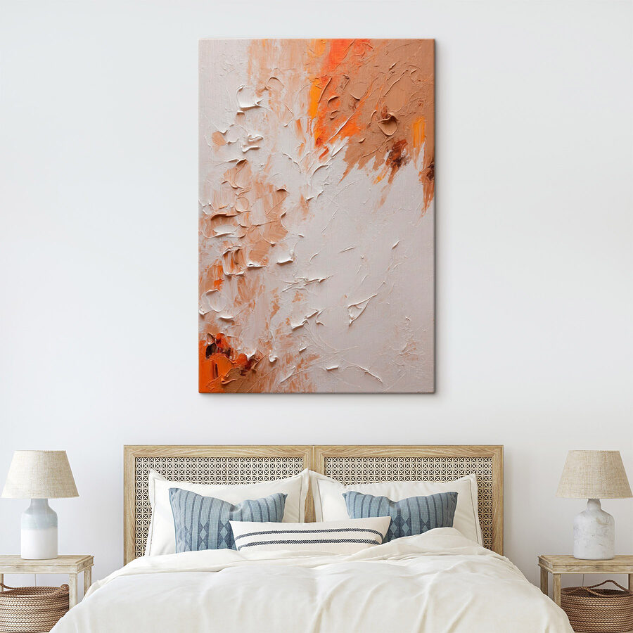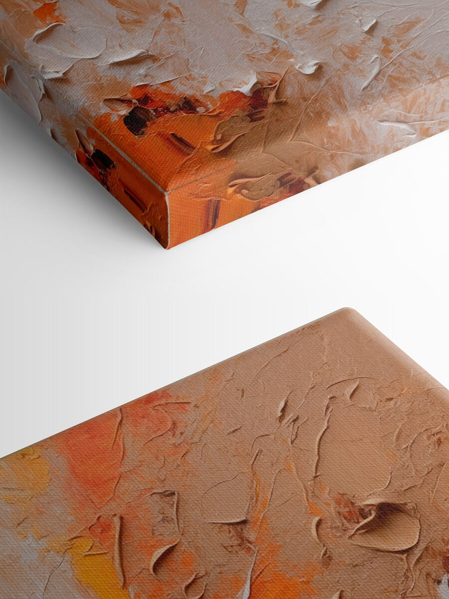 Stel je voor dat je een gezellige kamer binnenstapt en begroet wordt door de warme omhelzing van deze canvasprint. Abstracte texturen wervelen als een zacht briesje, met zachte tinten die elke hoek opfleuren. Het is als een slok warme chocolademelk op een frisse dag – onmiddellijke troost. Perfect voor die lege muur, dit stuk nodigt uit tot gesprekken en dagdromen. Stel je een ontspannen avond voor, de zon gaat onder en dit kunstwerk weerspiegelt die warme tinten, waardoor de stress van de dag verdwijnt. Het is niet alleen decoratie, het is een gevoel. Maak van de ruimte een sfeermaker. Want wie houdt er niet van een beetje charme aan de muur?