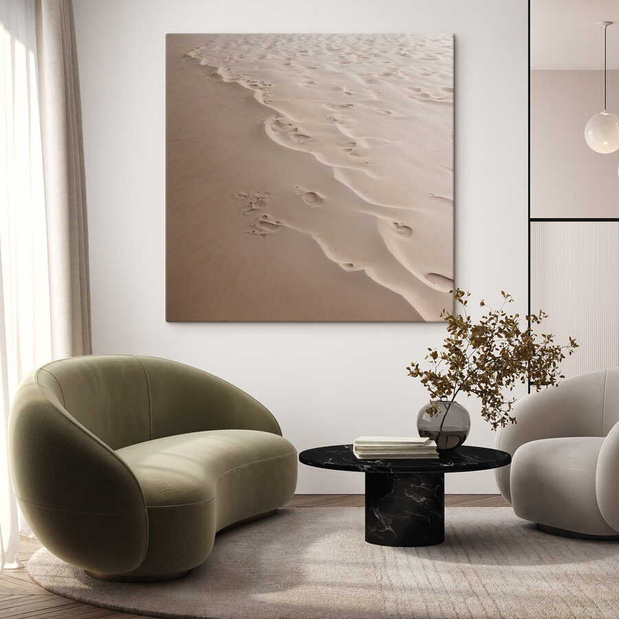 Breng een stukje rust in je interieur met de Canvas Print “Footprints in the Sand”. Stel je voor dat je wegdroomt met je ogen gericht op dit serene tafereel, waar zachte golven zachtjes de kust strelen en een vleugje van de wandeling van gisteren achterlaten. Het is als een warme stranddag die voor altijd is vastgelegd en iedereen eraan herinnert dat het leven draait om de momenten die we achterlaten. Perfect voor dat knusse hoekje waar ontspanning een must is, of als een gespreksonderwerp dat dagdromen inspireert. Een kleine ontsnapping thuis – want wie wil die zanderige bries nu niet voelen terwijl hij van zijn ochtendkoffie nipt?