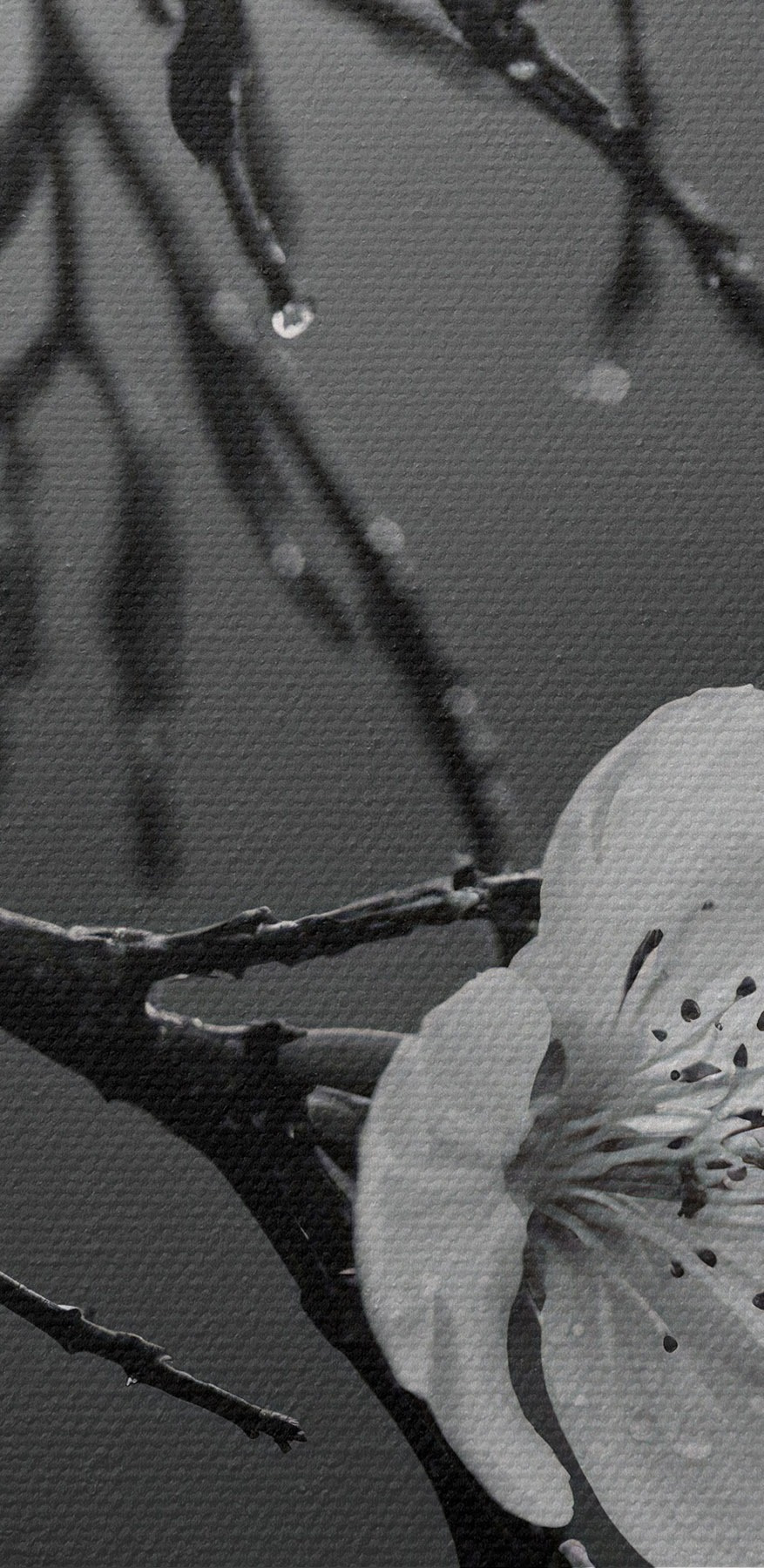 Stel je voor dat je een gezellige kamer binnenloopt waar de lucht gevuld is met de zachte geur van verse bloemen. Deze canvasprint, met delicate bloemblaadjes gedrapeerd in zachte druppels, vangt precies dat gevoel. Het is niet zomaar een kunstwerk; het is als een fluistering van de natuur in je kamer. Het zwart-witte ontwerp voegt een tijdloos tintje toe en past bij elke inrichting. Stel je voor: lekker luieren met een boek in de buurt, dat rustgevende uitzicht altijd aan de muur, dat je doet denken aan een frisse ochtend. Dit meubel nodigt uit tot een serene sfeer, waardoor het een perfecte gespreksstarter is. Pak een kopje thee en laat je zorgen wegdrijven.