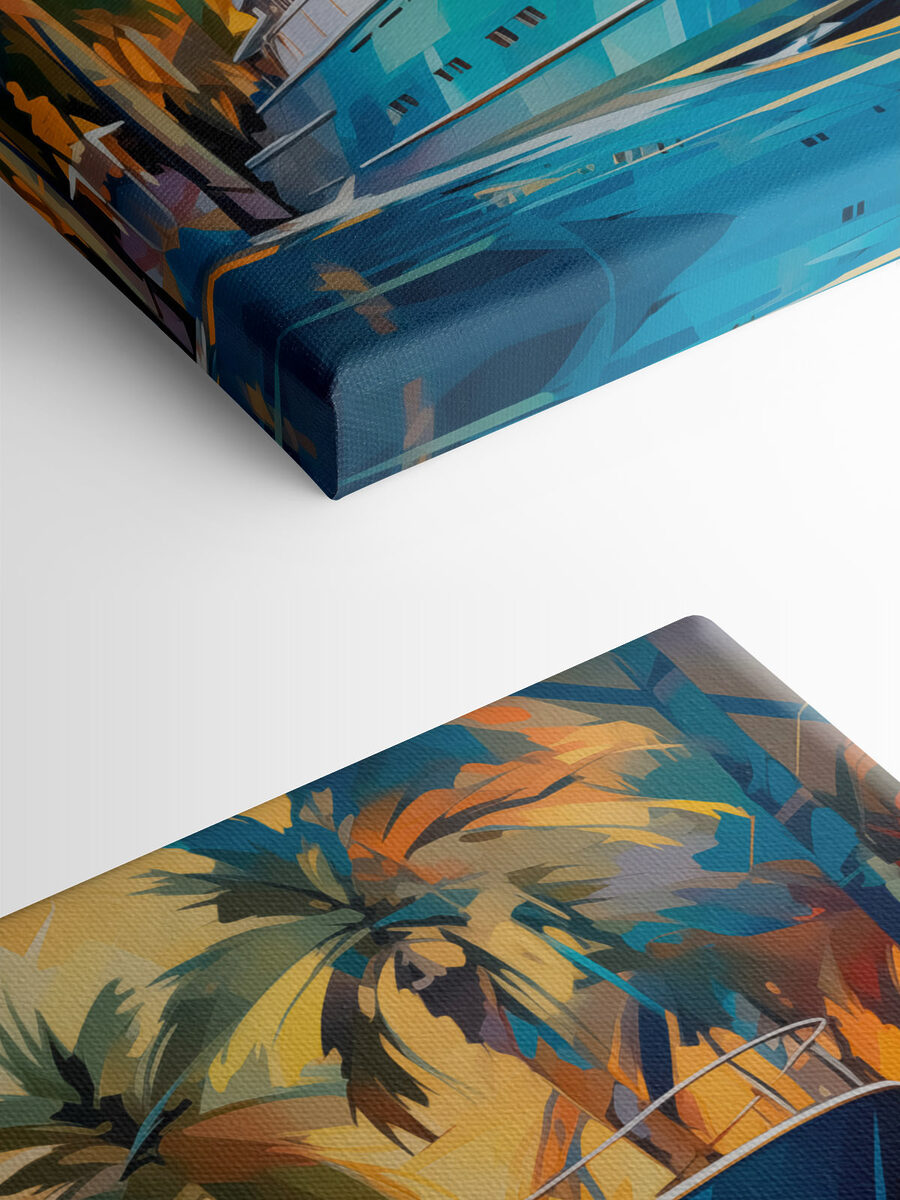 Verander elke muur in een stukje paradijs met deze levendige canvasprint. Stel je een prachtige blauwe boot voor die door rustig water glijdt, omringd door weelderige palmbomen die zoete woordjes van het eilandleven fluisteren. Het is net een minivakantie in je woonkamer, die je doet denken aan zonovergoten dagen en een zilte bries. Vrienden zullen zeker stoppen en staren, misschien zelfs vragen of je iets achterhoudt met een geheime strandreis. Perfect voor een strandgevoel of gewoon om even aan de werkelijkheid te ontsnappen – wie wil dat nou niet? Duik in een decor dat vreugde uitstraalt!