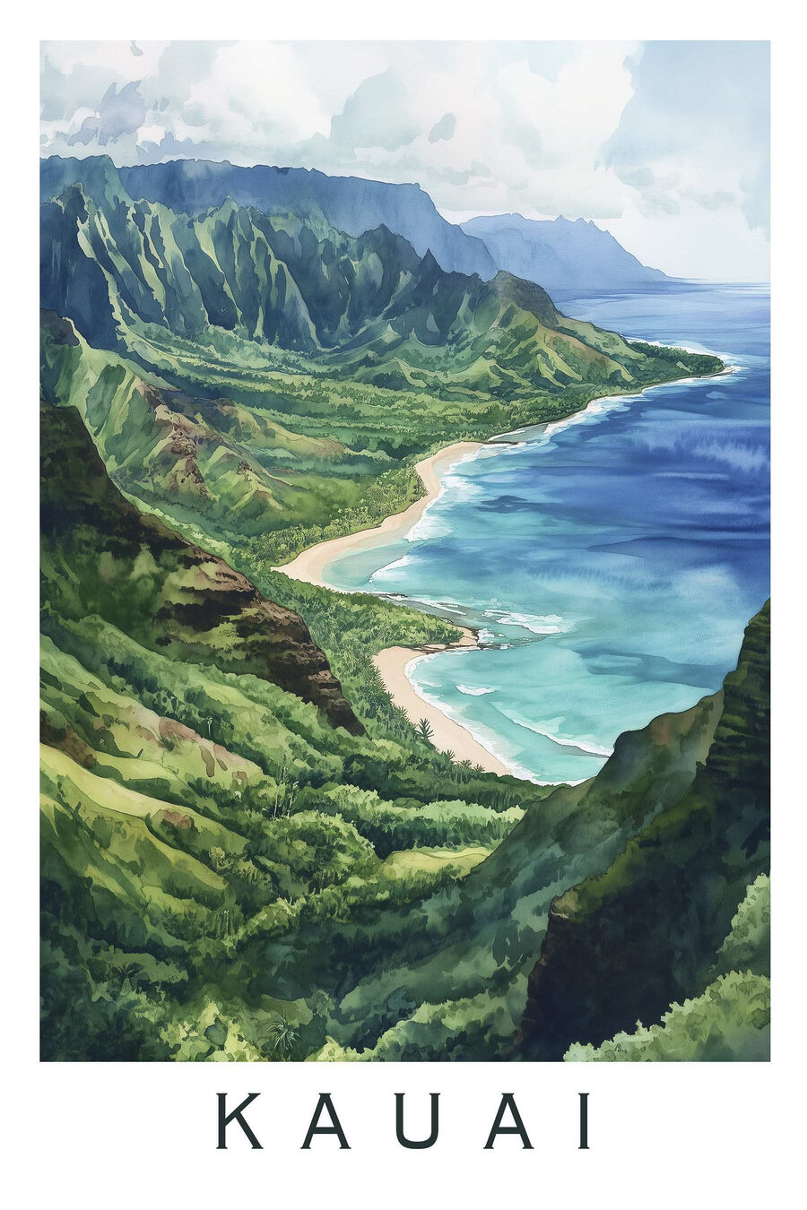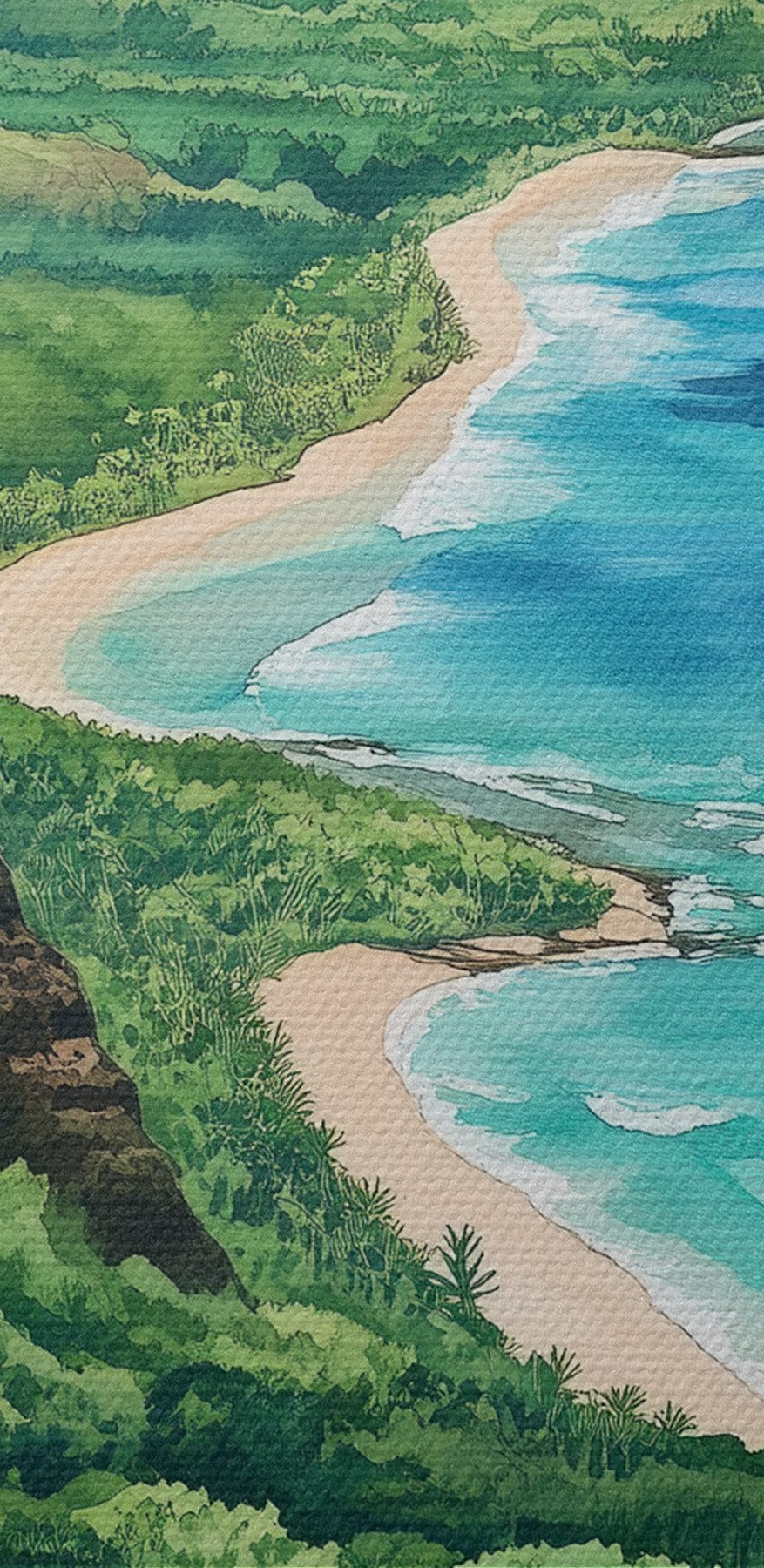 Transformeer elke ruimte met deze prachtige aquarel canvasprint van een strand en bergen, die moeiteloos de geest van de natuur vastlegt. Stel je voor dat deze schoonheid in je woonkamer hangt, zodat elke dag voelt als een dromerig uitje. Het levendige blauw van de oceaan gaat naadloos over in weelderig groen en roept een gevoel van rust en avontuur op. Het is als je eigen venster naar het paradijs, perfect om de dagelijkse sleur te verjagen. Of het nu dagdromen over vakanties oproept of gewoon een vrolijk tintje aan je muren geeft, dit kunstwerk brengt een stukje sereniteit in huis.