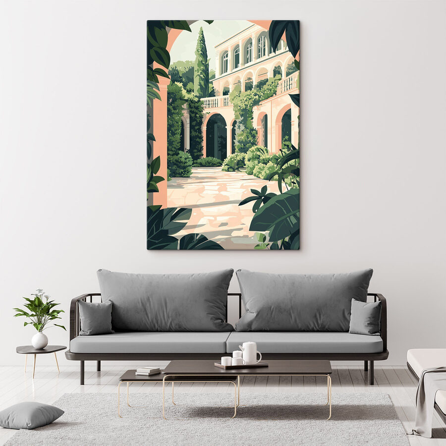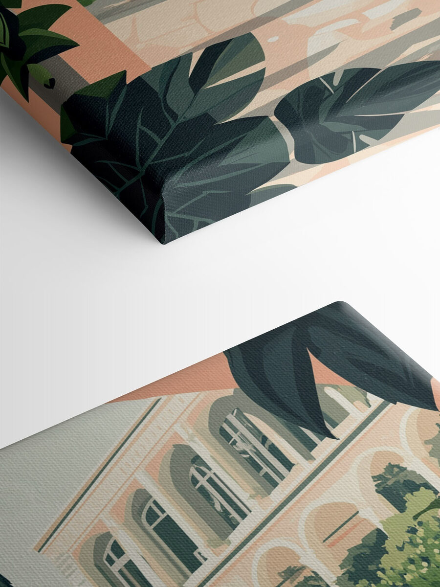 Ontsnap naar een dromerige ruimte met de Canvas Schilderijen Building met een balkon en bloeiende planten. Dit kunstwerk combineert moeiteloos architectuur en natuur en brengt een stukje serene elegantie bij je thuis. Stel je voor dat je hier aan je koffie nipt, omringd door weelderig groen met een zacht briesje dat de bladeren doet ritselen – pure gelukzaligheid. Perfect voor een gezellig hoekje of die lege muur die om aandacht smeekt, het voegt een uitnodigende sfeer toe zonder veel moeite. Natuur en verfijning komen hier samen, waardoor het gemakkelijk een gesprek op gang brengt. Wie wil dat nou niet?