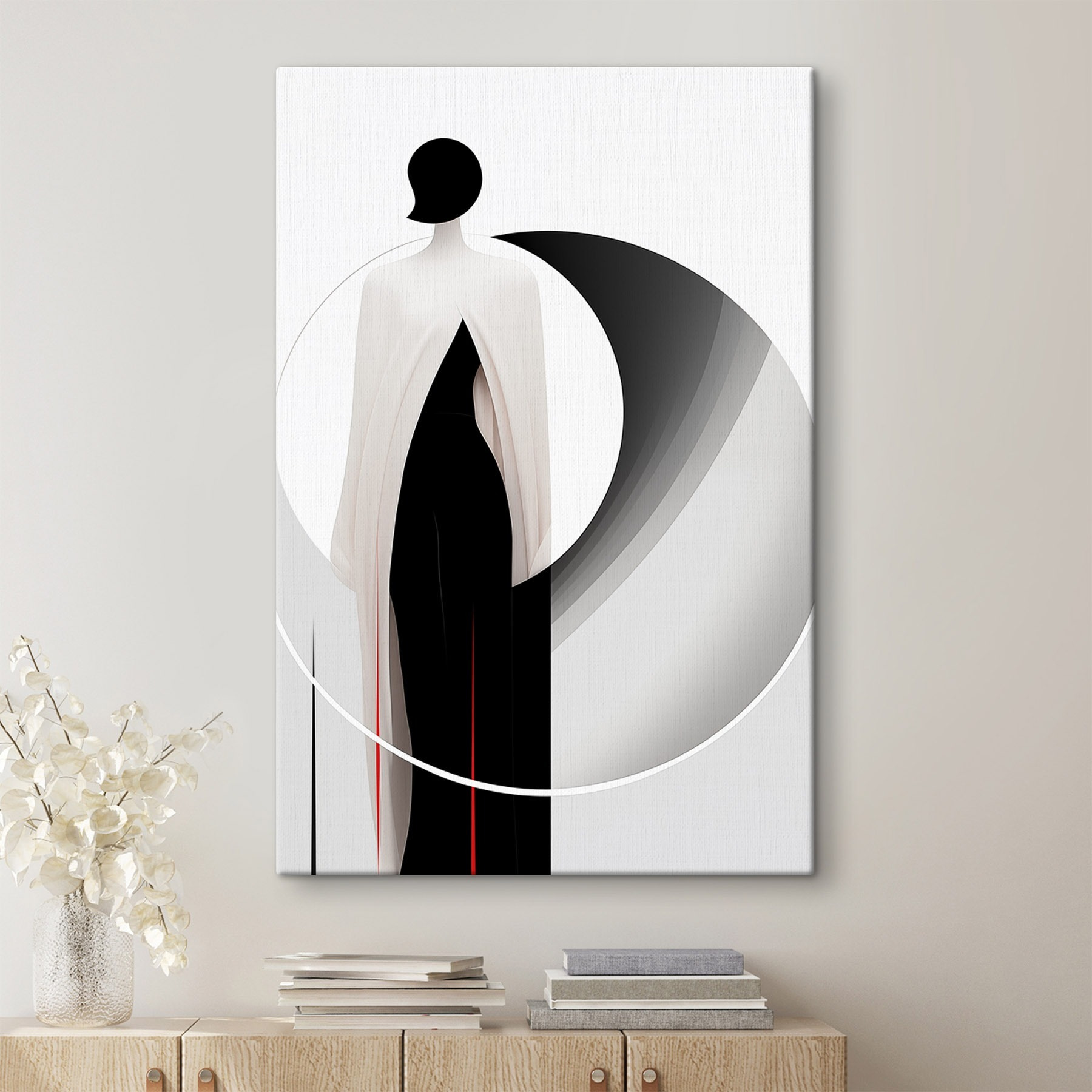 Stap in een wereld waar eenvoud en stijl elkaar ontmoeten met deze canvasprint van een vrouw in een zwart-witte jurk. Het is alsof het kunstwerk fluisterend spreekt en gasten uitnodigt om haar elegantie te bewonderen. Je kunt het zwiepen van die jurk bijna horen als ze door je woonkamer danst. Dit kunstwerk vangt een stemming – misschien is het zelfvertrouwen of gewoon een vleugje mysterie. Perfect voor elke ruimte, ze past moeiteloos bij andere decoraties en voegt tegelijkertijd een uniek tintje toe. Hang het in die hoek die een beetje leeg aanvoelt en kijk hoe het de sfeer verandert. Kunst hoeft niet schreeuwerig te zijn om een statement te maken.