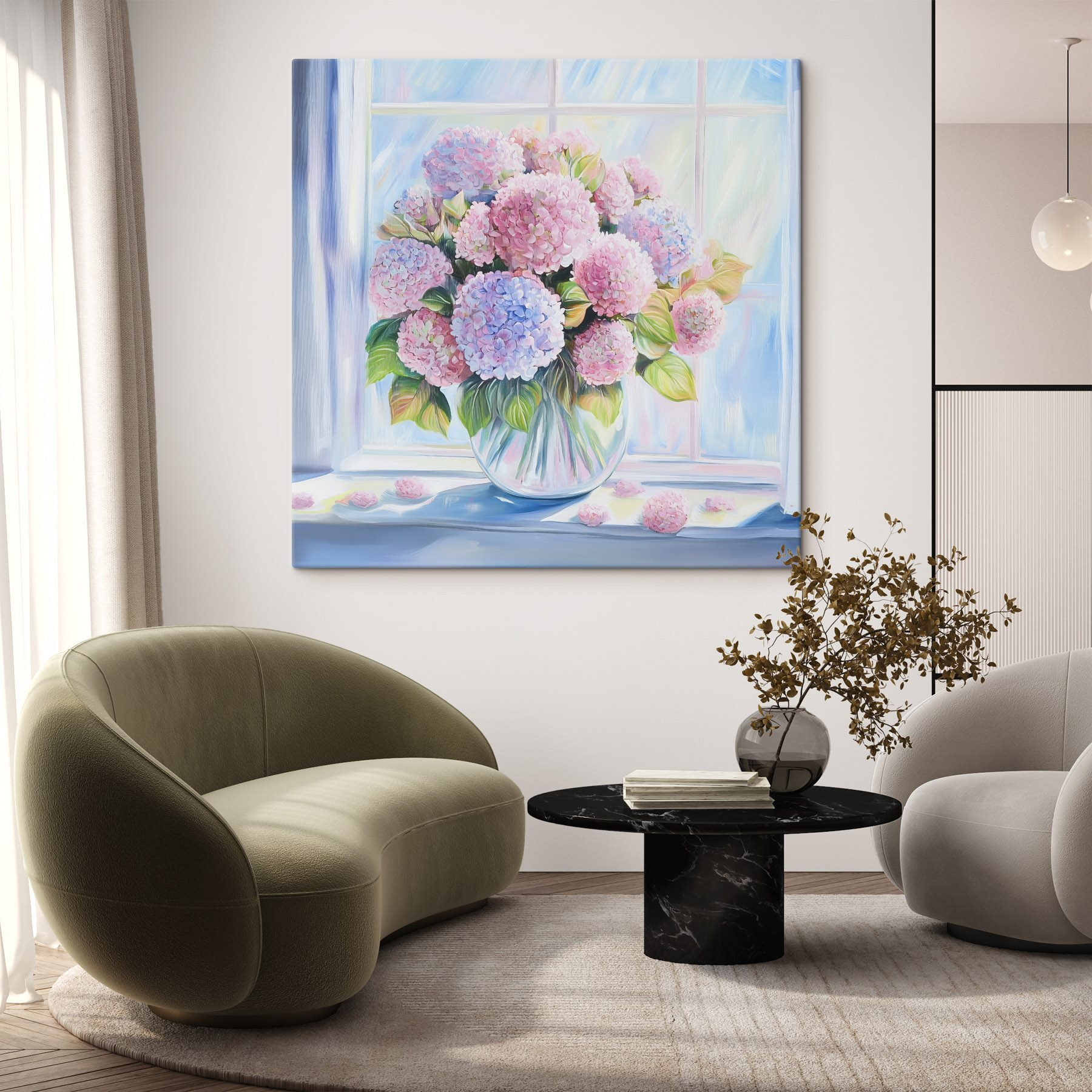 Fleur elke ruimte op met deze prachtige canvasprint met een levendige vaas bloemen. Stel je voor dat je een kamer binnenloopt en begroet wordt door de vrolijke uitbarsting van kleur die deze bloemen met zich meebrengen. Het is alsof je een stukje natuur in huis haalt, of het nu in een gezellige keuken of een chique woonkamer hangt. De zachte blauwe en roze tinten voegen een vleugje warmte toe en passen perfect bij elke decoratiestijl. Het is perfect voor de dagen dat je een opkikkertje nodig hebt of gewoon wilt dagdromen over de lente. Dit kunstwerk is een heerlijke aanvulling op elke kunstcollectie en voelt aan als een zachte knuffel voor de ziel.