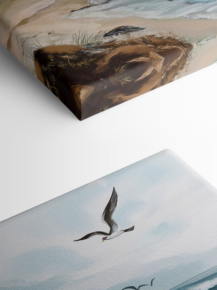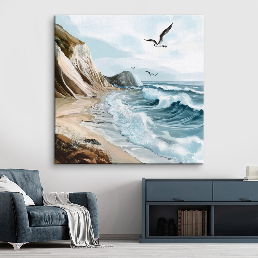 Tover elke muur om in een stukje paradijs met deze charmante canvasprint van een zeemeeuw die sierlijk over een zonovergoten strand zweeft. Stel je die kalmerende zeebries voor en het zachte geluid van golven die tegen de kust slaan – dit kunstwerk legt het prachtig vast. Het geeft een gevoel van vrijheid en rust waardoor je zin krijgt om je schoenen uit te trekken en het zand tussen je tenen te voelen. Perfect voor een gezellige woonkamer of een relaxte studeerkamer, het is alsof je een beetje strandontsnapping uitnodigt in het dagelijks leven. Wie zou niet elke dag glimlachen bij het zien van dit levendige stuk?