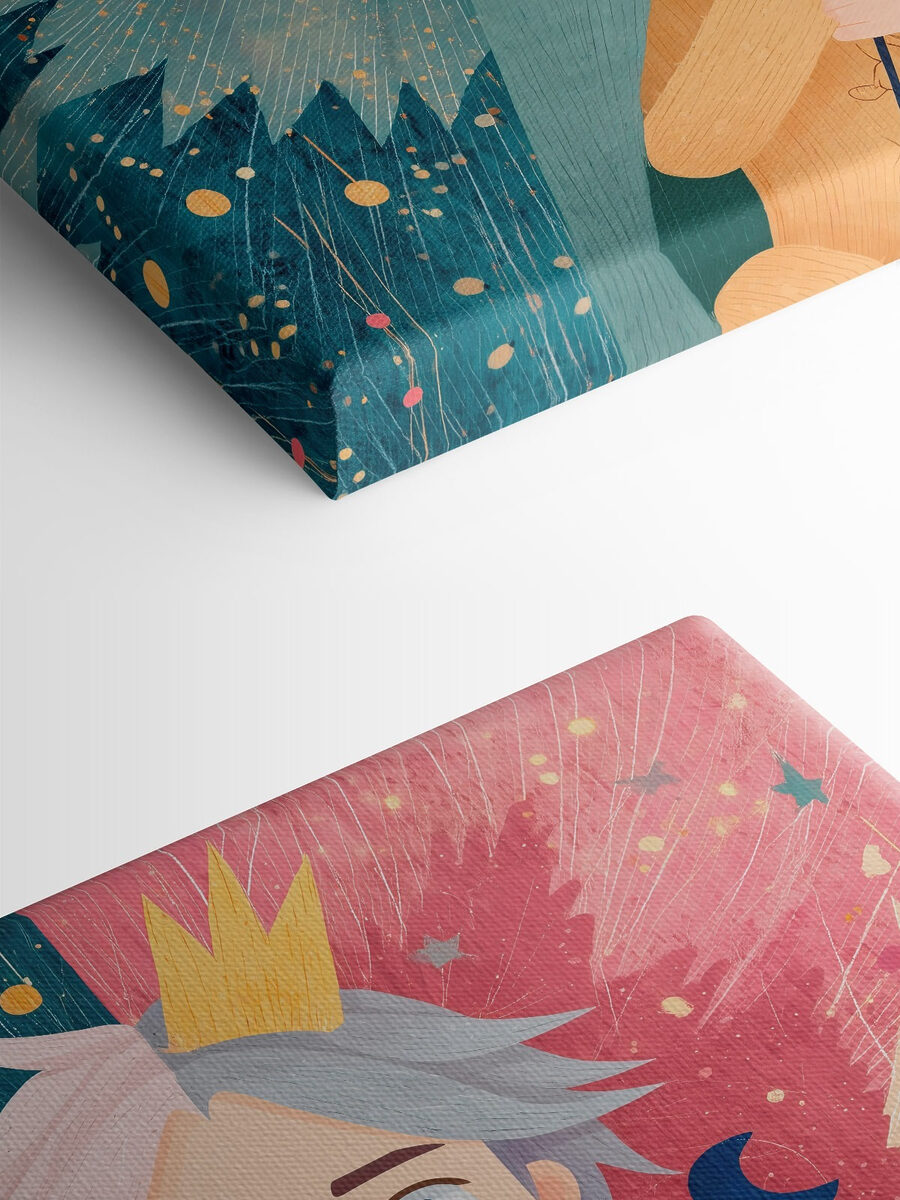 Transformeer een kamer met deze opvallende canvasprint met een grillige jongen met vleugels en een kroon. Het is alsof je een sprookje binnenstapt – perfect om de verbeelding van kinderen aan te wakkeren of om een speelse draai te geven aan ruimtes voor volwassenen. De kleuren dansen samen, waardoor het voelt als een feest van dromen en avontuur. Stel je dit levendige kunstwerk voor boven een gezellige leeshoek of als conversatiestarter in een speelkamer. Het is niet zomaar kunst, het is een stukje magie dat uitnodigt tot dagdromen en glimlachen. Ga je gang, laat het wat jeugdnostalgie inspireren!