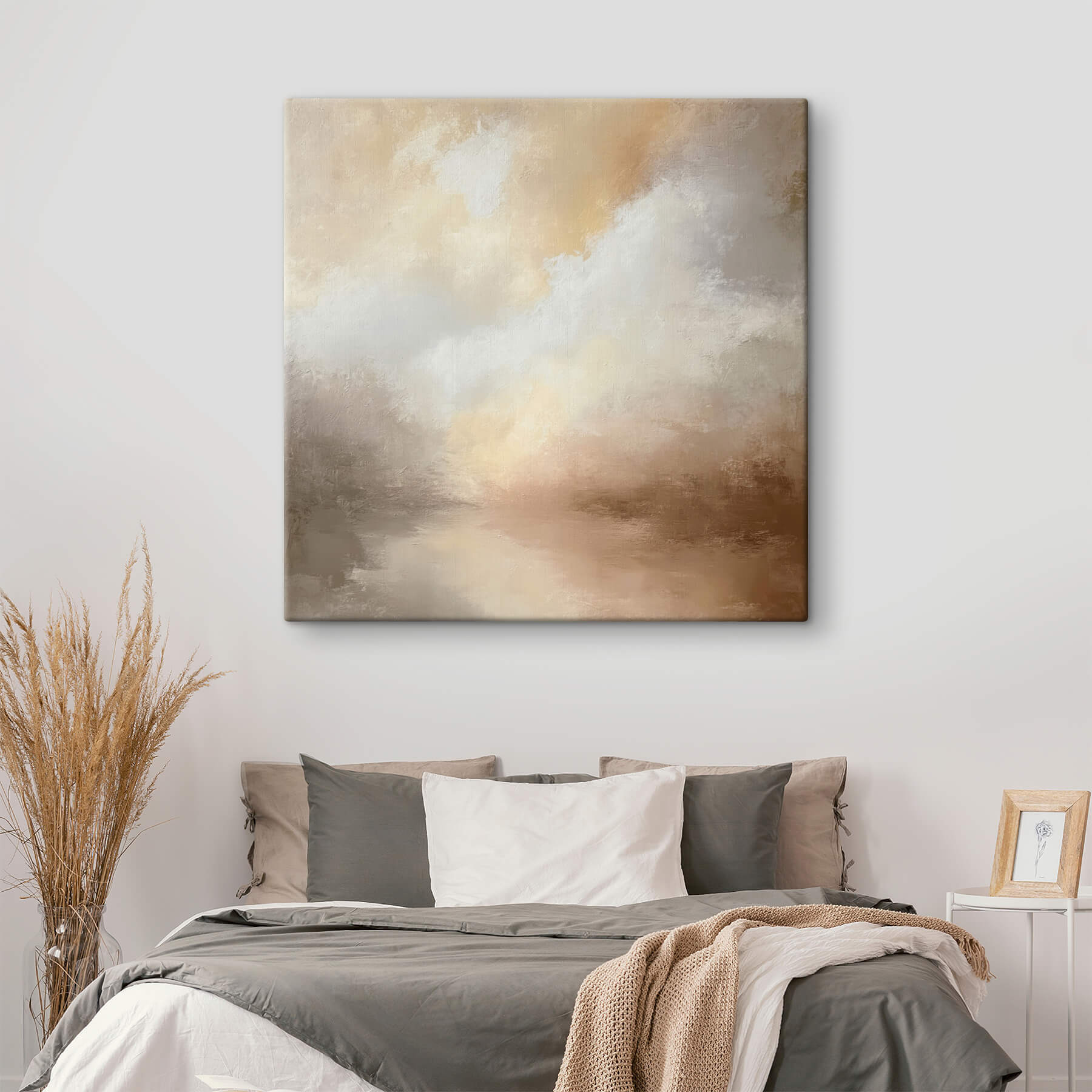 Deze canvasprint voelt als een warme knuffel voor elke muur. Stel je voor dat je een kamer binnenloopt en begroet wordt door zachte, wervelende wolken van zachte tinten die de ziel onmiddellijk kalmeren. Het is alsof je de zonsondergang ziet terwijl je van je favoriete thee nipt – pure gelukzaligheid. Dit schilderij geeft de essentie van een vredig landschap weer en nodigt uit tot dagdromen over wandelen door serene velden of gewoon staren in het oneindige. Perfect voor een knus hoekje of een opvallende muur, het voegt een vleugje rust toe aan het dagelijks leven. Wie zou zich niet willen koesteren in een beetje dagelijkse sereniteit? Perfect voor iedereen die houdt van kunst die zacht maar krachtig spreekt!