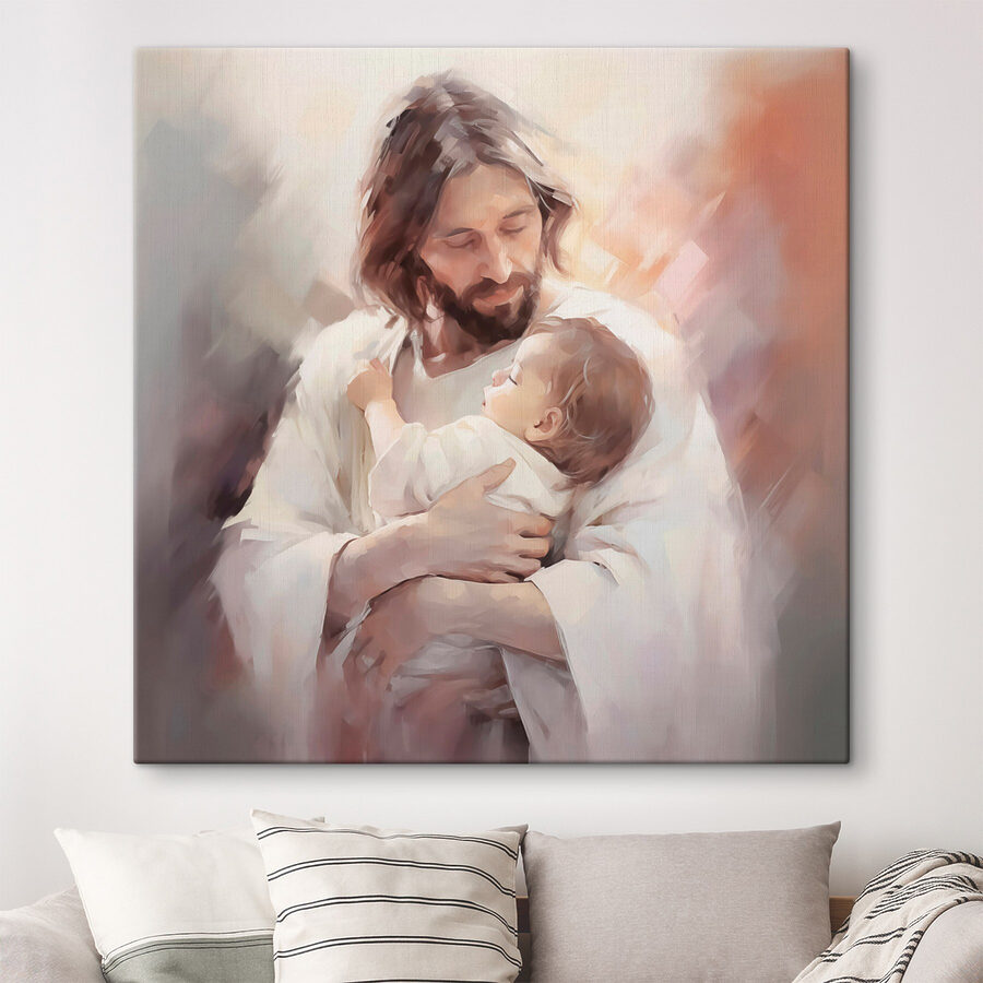 Deze canvasprint toont een hartverwarmende scène – een man die een baby wiegt en een gevoel van vrede en tederheid uitstraalt. Stel je voor dat dit kunstwerk een knus hoekje in je woonkamer opfleurt of zelfs een kinderkamer een vleugje rust geeft. De zachte, dromerige kleuren trekken je naar binnen, waardoor het bijna aanvoelt als een zachte omhelzing. Het is niet zomaar een decoratie; het nodigt uit tot warme gedachten en rustige momenten. Bovendien is het een perfecte gespreksstarter. Vrienden zullen even stilstaan, glimlachen en de schoonheid waarderen. Dit sieraad voelt aan als een kleine herinnering aan liefde en hoop, tijdloos en universeel. Perfect om die goede vibes thuis te voeden.