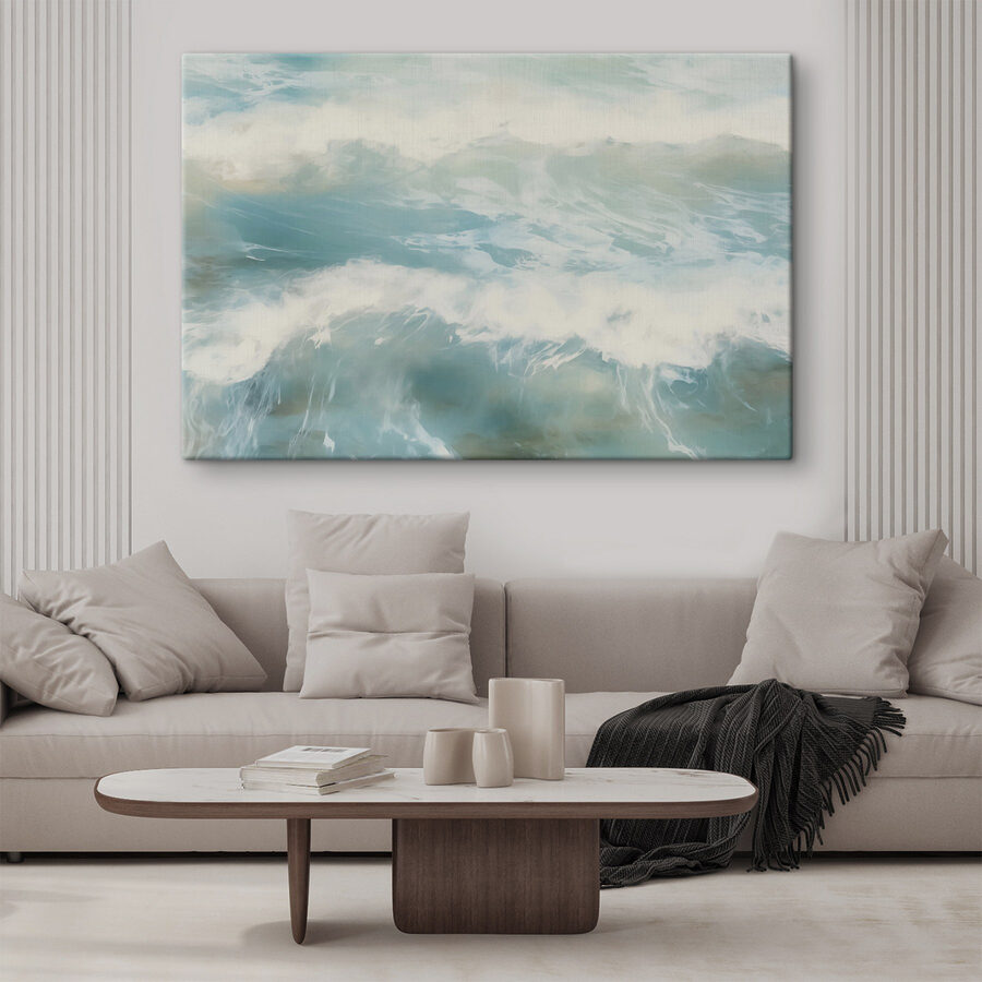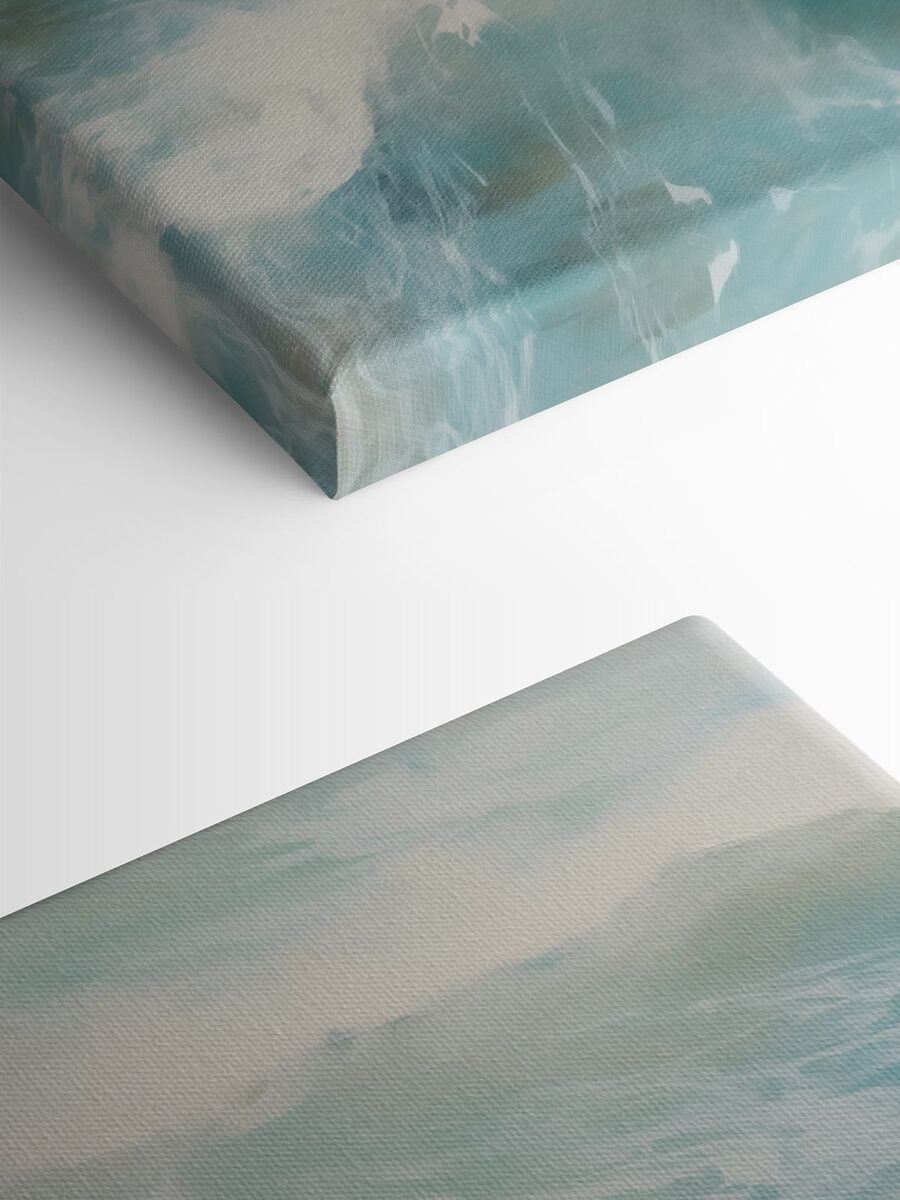Duik in de rustgevende sfeer van “Zachte golven dansen op het oppervlak”. Deze canvasprint vangt de zachte, ritmische beweging van water en creëert een onmiddellijke ontsnapping naar een vredig strand. Stel je voor dat je lekker knus in je woonkamer zit en de kalmerende blauwtinten en zachte witten als een koel briesje over je heen laten spoelen. Het is alsof je een mini-vakantie aan je muur hebt hangen. Perfect om een vleugje natuur toe te voegen aan elke ruimte, het nodigt uit tot luie middagen en dagdromen over wandelingen aan zee. En misschien inspireert het wel tot een spontane strandreis – wie heeft er geen geheugensteuntje nodig om te ontspannen?