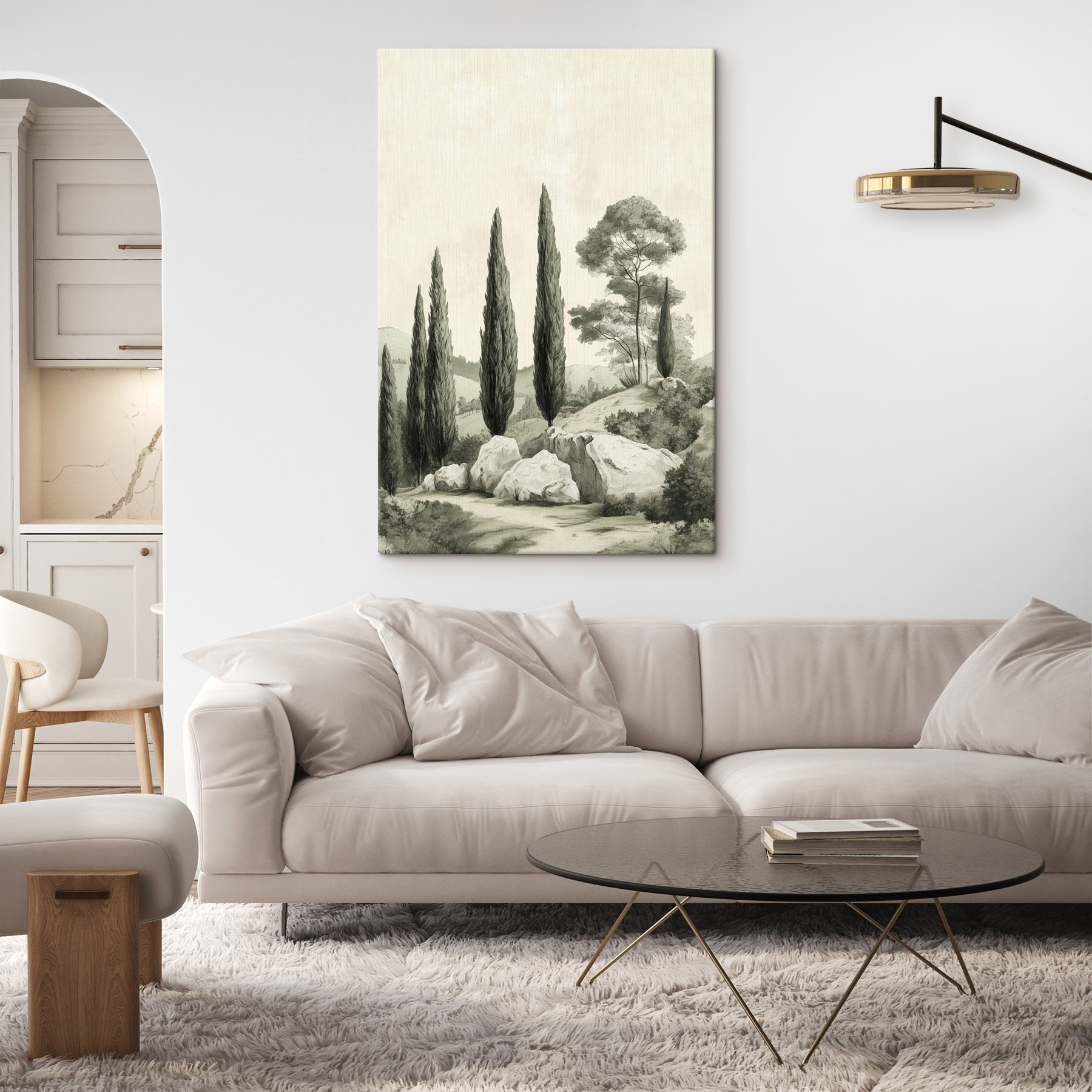 Haal een vleugje natuur in huis met deze prachtige canvasprint van een serene groep bomen op een glooiende heuvel. De zwarte en witte tinten creëren een klassieke sfeer en geven elke kamer een gevoel van rust. Stel je voor dat je ‘s ochtends aan je koffie nipt en naar deze hoge, elegante bomen staart die verhalen uit het verleden lijken te fluisteren. Het is alsof je een stukje buiten bij je hebt. Perfect voor mensen die van eenvoud houden en gesprekken willen aanzwengelen over de wonderen der natuur. Dit werk is een charmante herinnering dat schoonheid niet altijd om kleur draait – soms gaat het om de vormen die tot de verbeelding spreken.